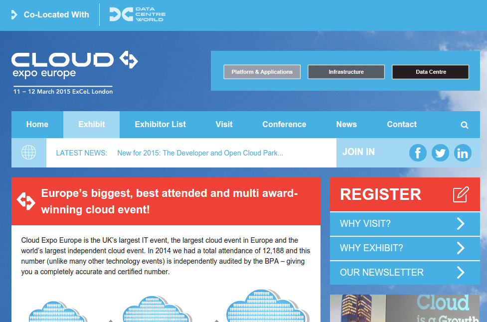 ConsulPartner iSrl sarà presente allo stand della Cloudweavers Ltd al CLOUD EXPO EUROPE 2015 11 e 12 Marzo 2015 ExCeL London Luogo: London (UK)Data: Mercoledì, Marzo 11, 2015